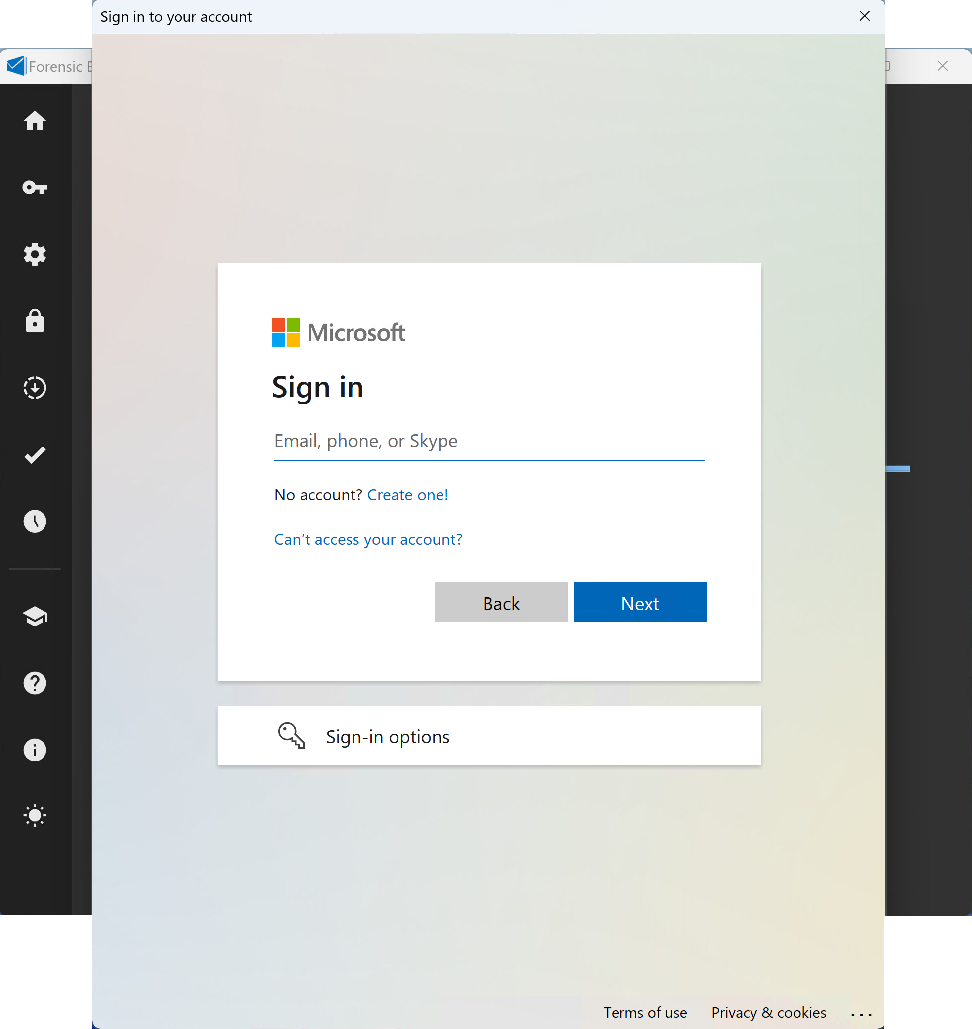When activated, FEC will no longer launch the system web browser to authenticate with Microsoft or Yahoo / AOL via OAuth. For Microsoft, the embedded webview looks as follows: