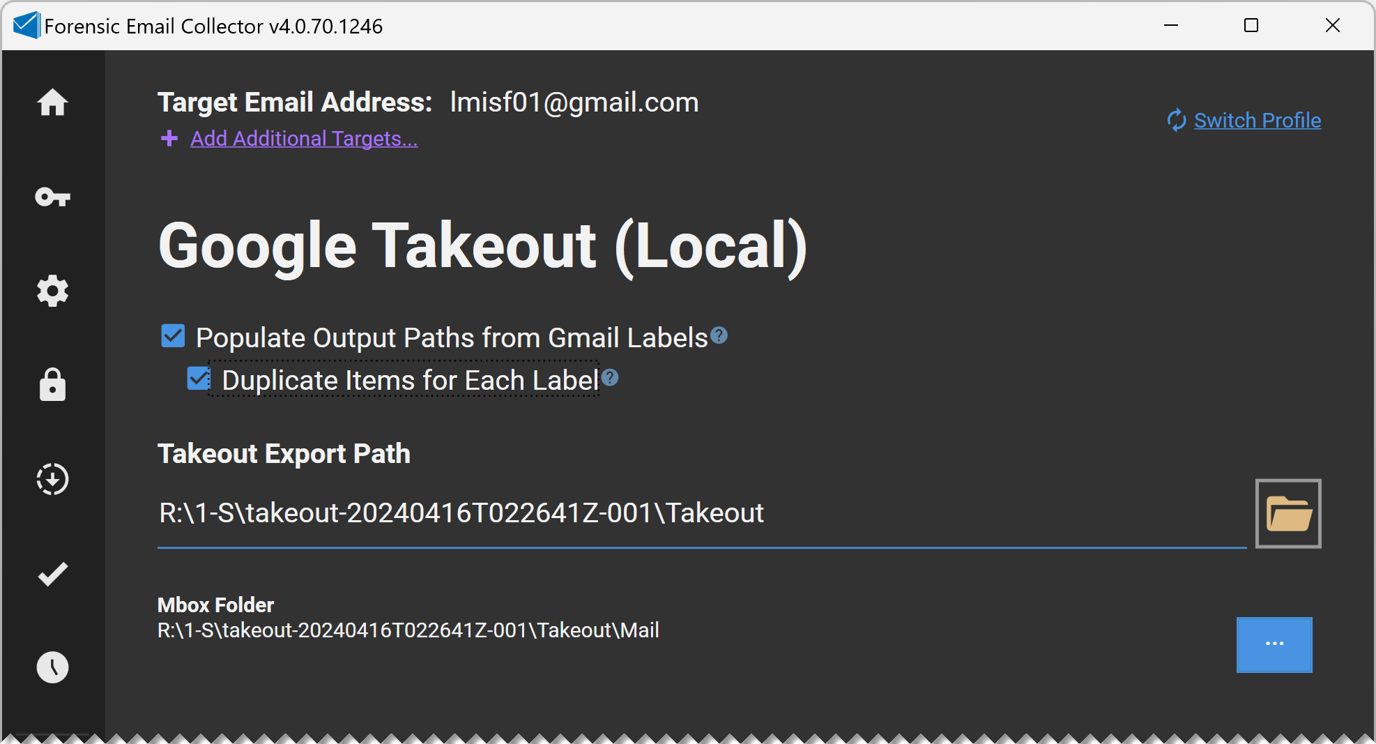 Similar to the Local Vault Export workflow, FEC’s Takeout workflow allows label-based foldering, EML / MSG / PST output, Inline Search, Differential Acquisition, and decryption.