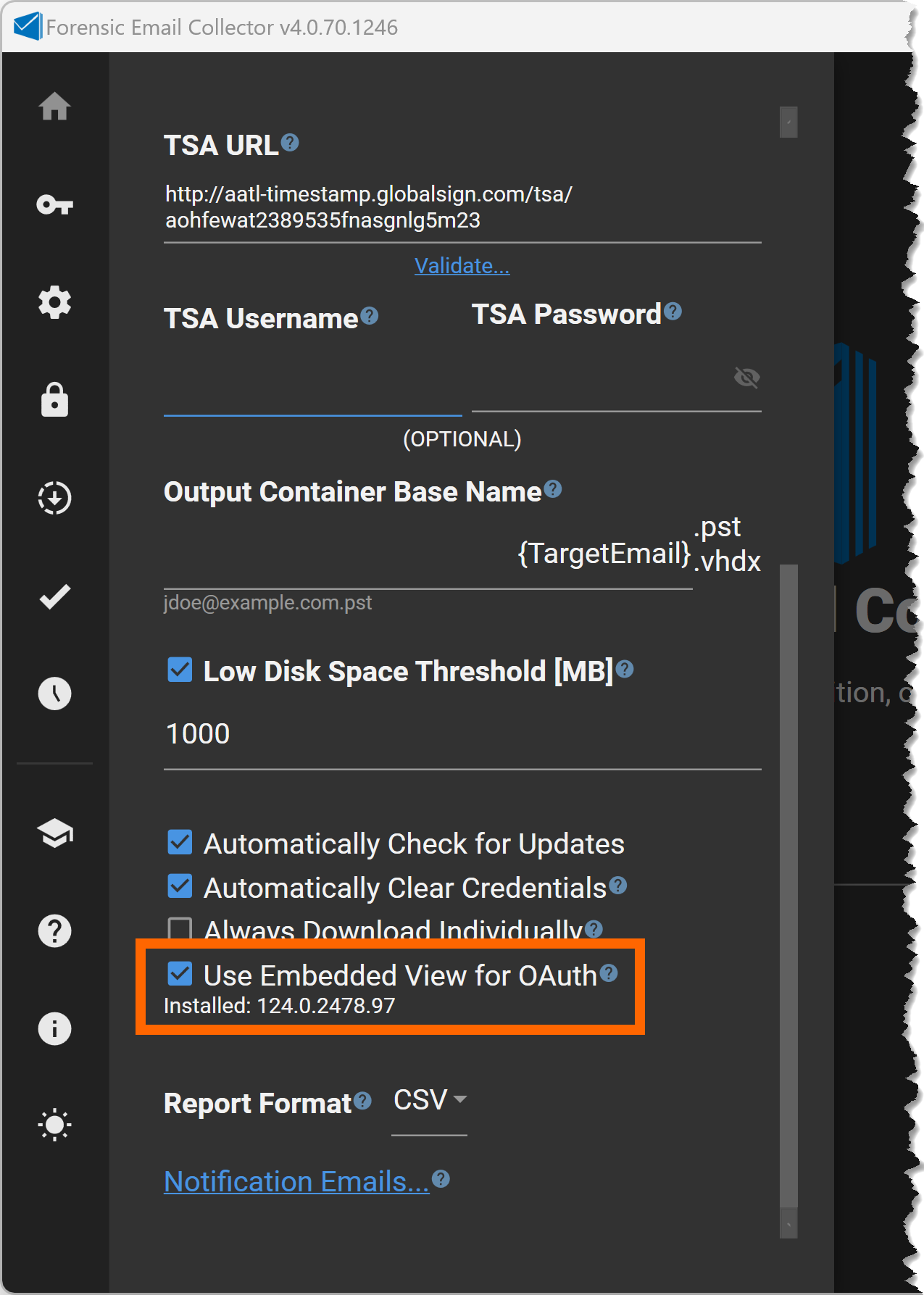 FEC now provides the option to use an embedded browser for modern authentication to improve cookie isolation. This can be activated from FEC’s preferences: