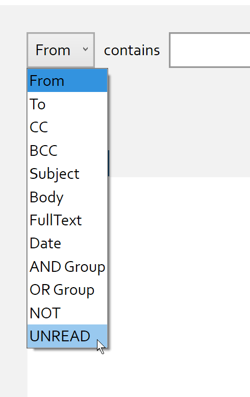 The default term searches for “unread” messages. You can look for “read” messages by adding the “UNREAD” term, selecting the added “UNREAD” term, and then applying the “NOT” operator to it as seen in the screenshot above.