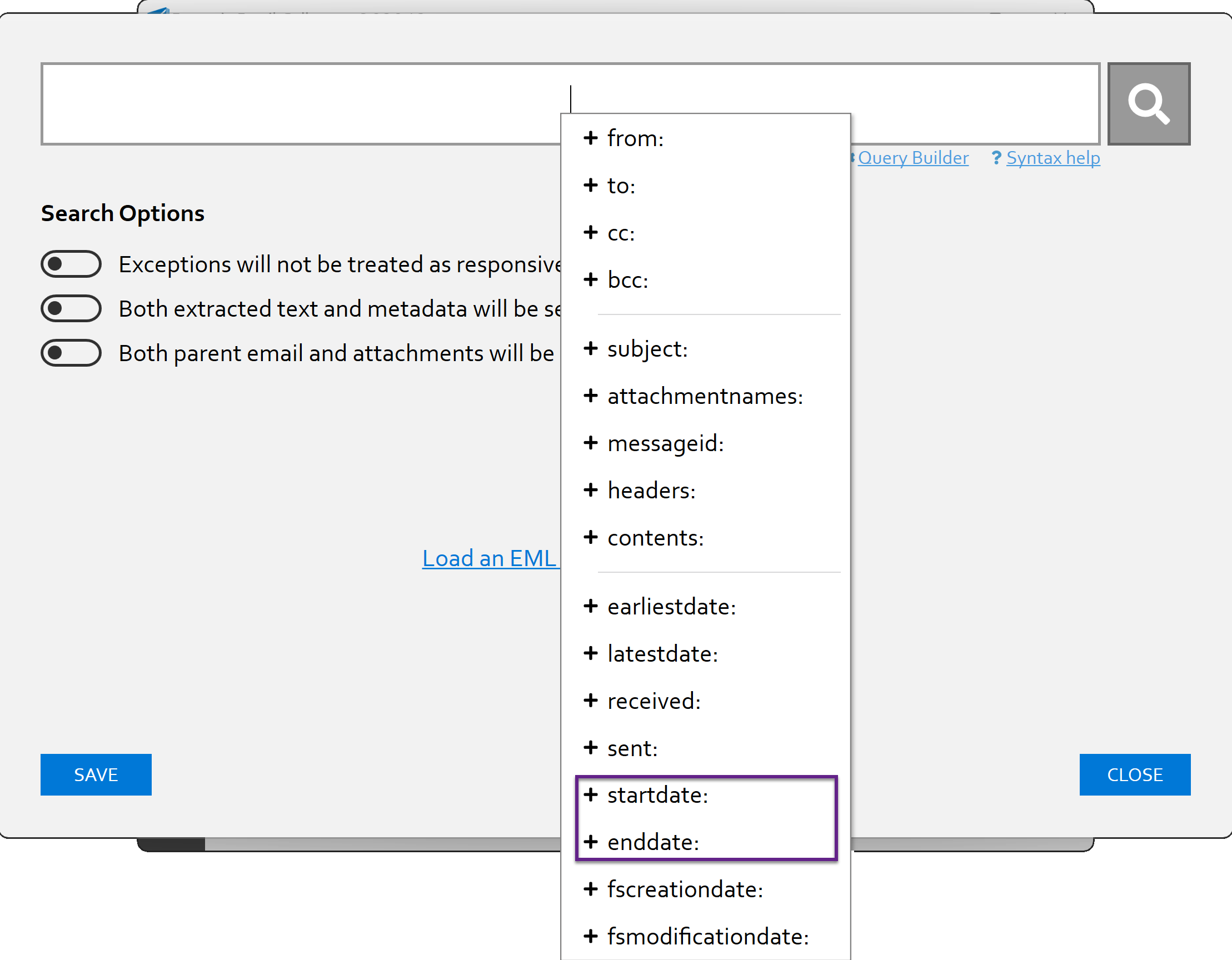 Inline Search now supports calendar and contact types. We have also added startdate and enddate fields so that you can filter calendar events by their dates when performing Inline Searches. This should make your life easier when performing filtered Google Calendar acquisitions or M365 calendar acquisitions via EWS.