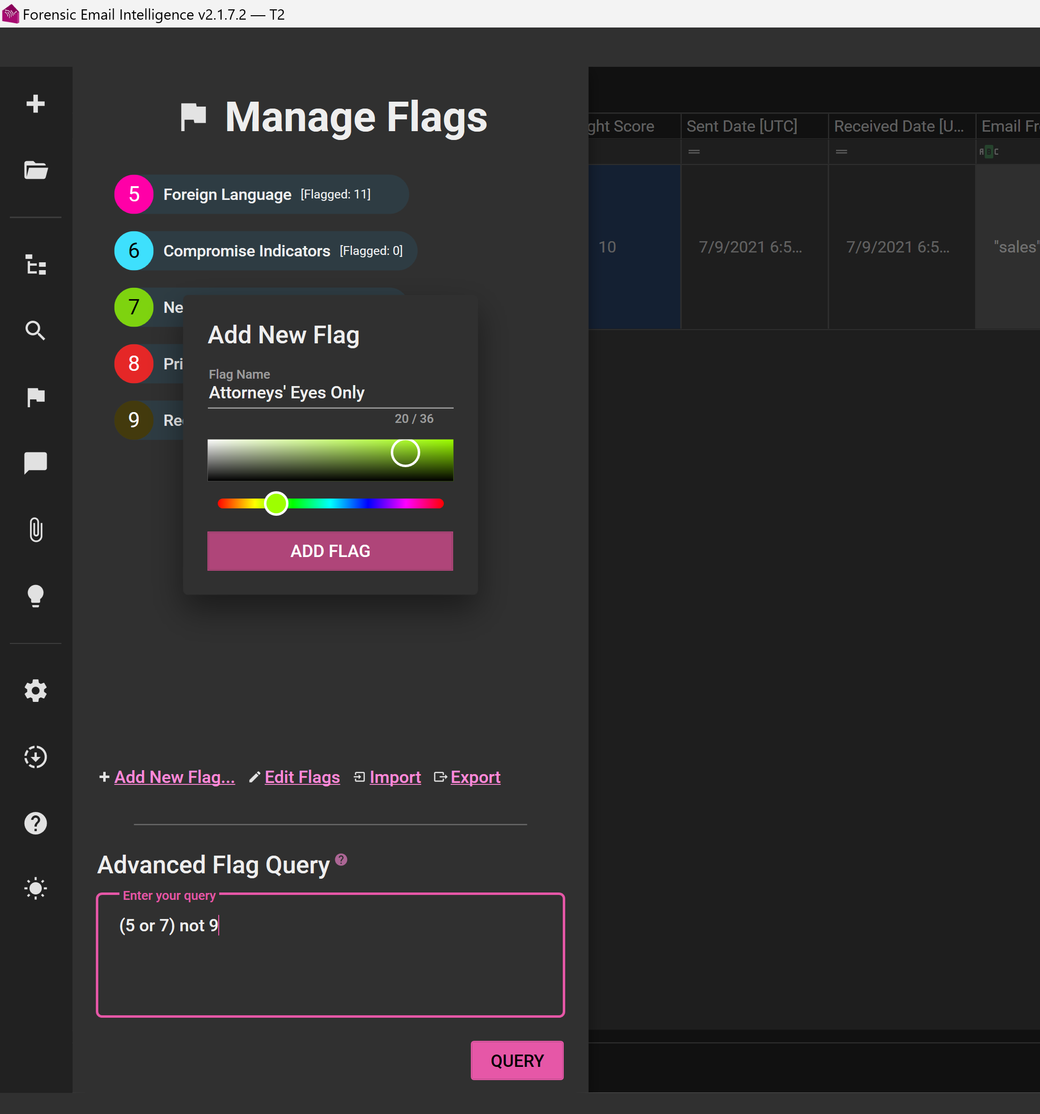 We have completely overhauled FEI’s flag system. You can now create custom flags with your label and color of choice as follows: