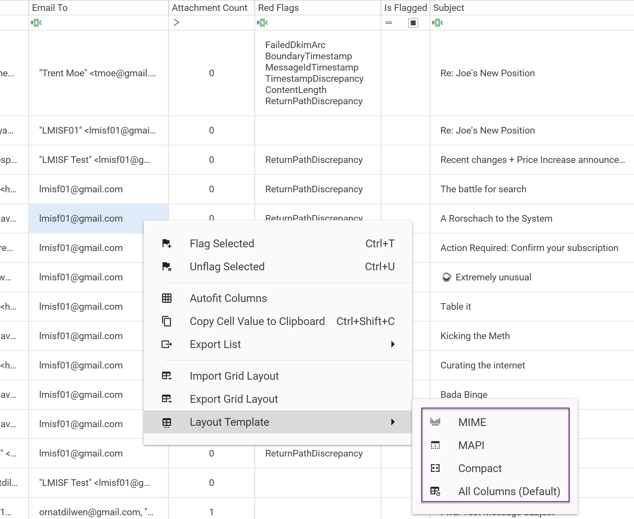 We have now added a third mechanism to copy only the value of a single cell to the clipboard. This is activated with the CTRL-SHIFT+C shortcut and copies only the cell’s value, not its corresponding header. Having the cell value in your clipboard makes it easier to pivot on that value. For instance, you can copy a Gmail Thread-ID into the clipboard and paste it as a grid filter to see messages within that email thread.