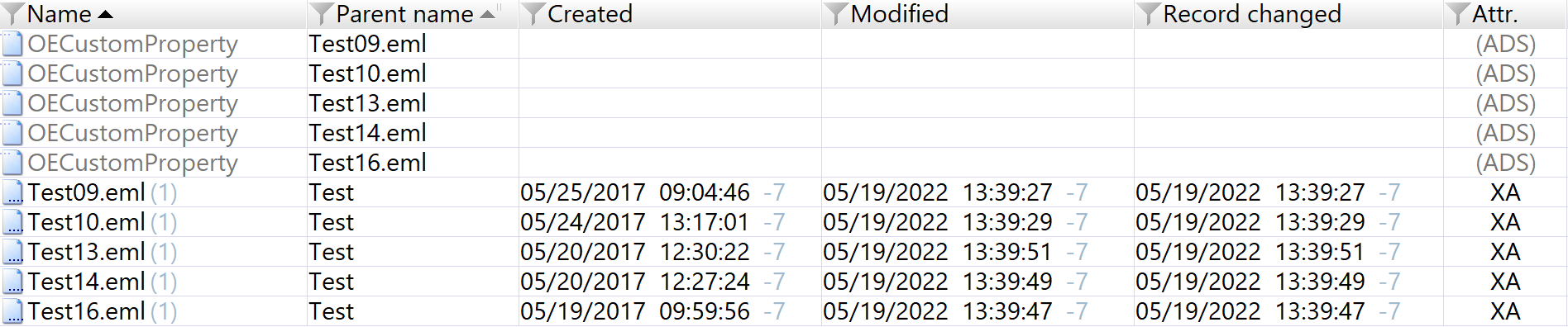 I hope this quick writeup will also help explain some unexpected file system timestamp changes a forensic examiner can encounter when analyzing endpoints. That is, you are examining files from a suspect’s devices and find that some of their file system last modification timestamps were changed. Was it because the suspect modified the contents of the file, or was it the Windows property system’s creating an ADS because the suspect merely clicked on the file? (this applies to more file types than just EML files).